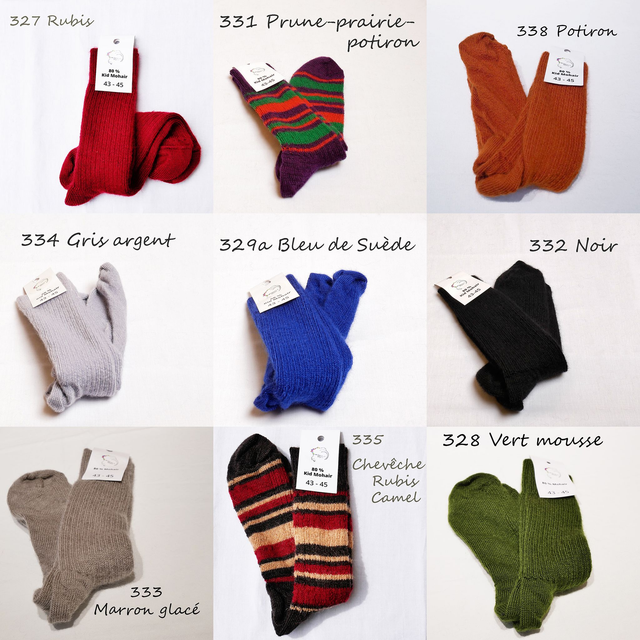 Chaussettes 80% mohair-19% polyamide-1% élasthanne. Tricotées à Castres, elles sont remaillées à la main, sans couture pour un grand confort